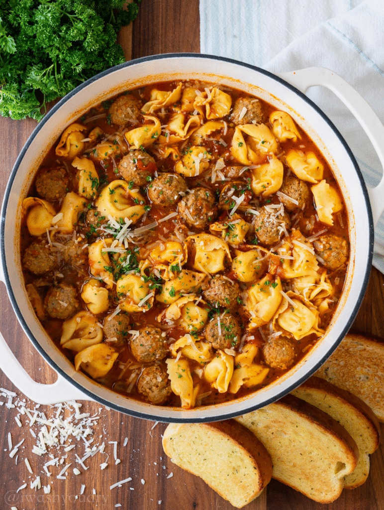 Meatball Tortellini Soup Description This comforting Meatball Tortellini Soup combines savory Italian meatballs, tender cheese ...