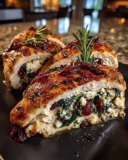 Cranberry & Spinach Stuffed Chicken Breasts with Brie This deliciously savory and slightly sweet stuffed ...