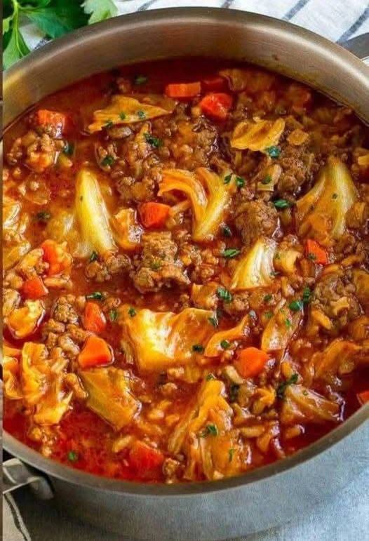 Cabbage Roll Soup Recipe Ingredients 1 Tbsp olive oil 1 ½ lbs lean ground beef ...