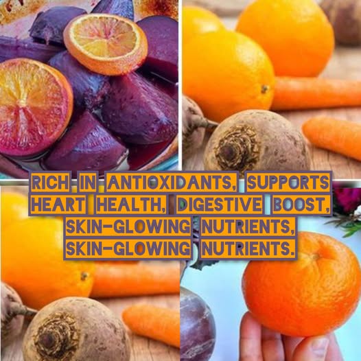 Beets provide nitrates that support healthy blood pressure; oranges add potassium.