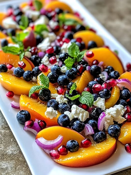 This Blueberry Peach Feta Salad is a refreshing, vibrant summer salad that balances sweet, juicy peaches and plump blueberries with the creamy saltiness of feta cheese. Tossed with crisp greens, crunchy nuts, and a light honey-lemon dressing, it’s the perfect side dish or light meal—bright, colorful, and ready in minutes.