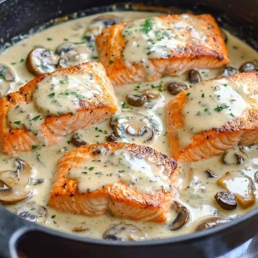 Creamy Garlic Mushroom Salmon