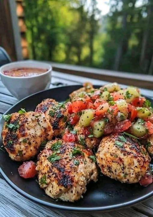 🍗 Garlic Cilantro Chicken Bites with Kiwi Strawberry Salsa