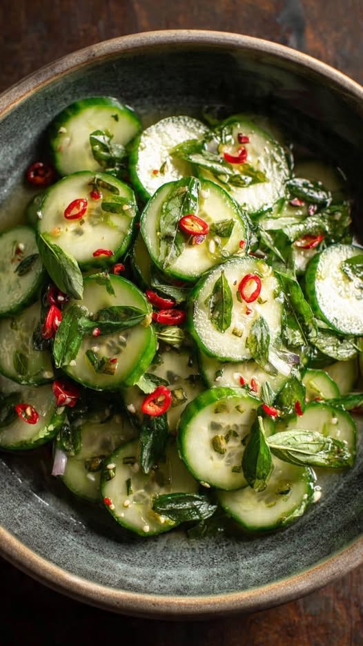 A crunchy, cool, and flavor-packed cucumber salad tossed with herbs, chili, and a bright vinaigrette. Perfect as a side dish for grilled meats, BBQ, Asian meals, or a light snack on its own.