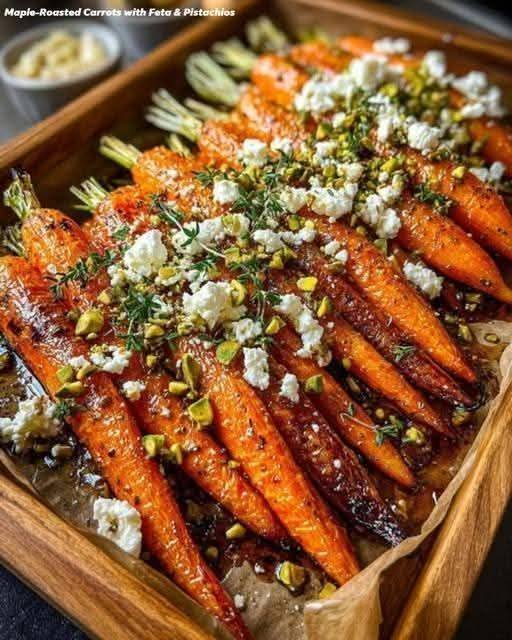 These roasted carrots are sticky, tender, and lightly caramelized, finished with creamy feta, crunchy pistachios, and fresh herbs. They make an impressive side dish for holidays or everyday meals.